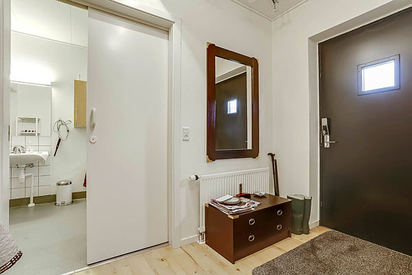 Boligerne indeholder entré, toilet/bad, spisekøkken, stue, soveværelse og udhus. Der er niveaufri adgang til have med delvist overdækket sydvestvendt terrasse.